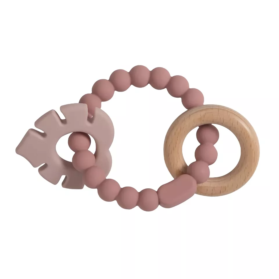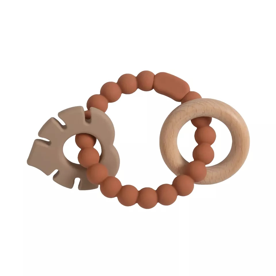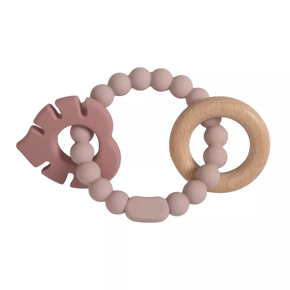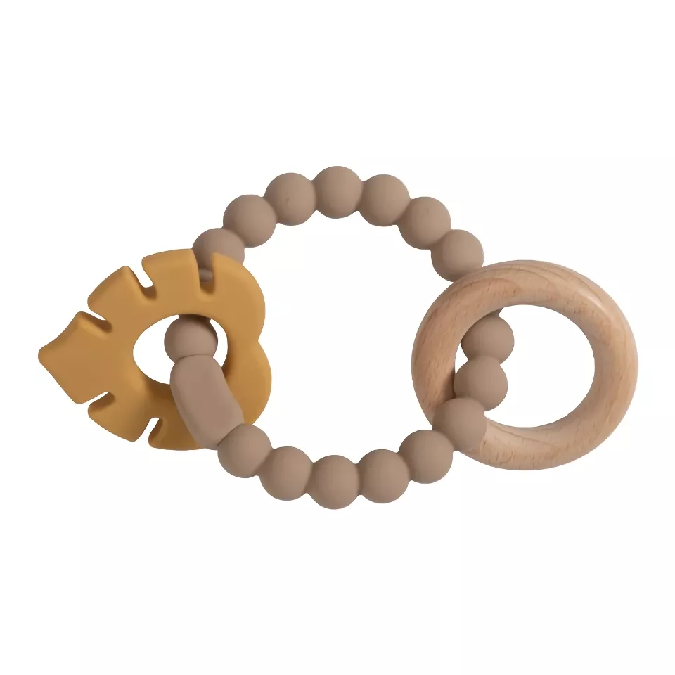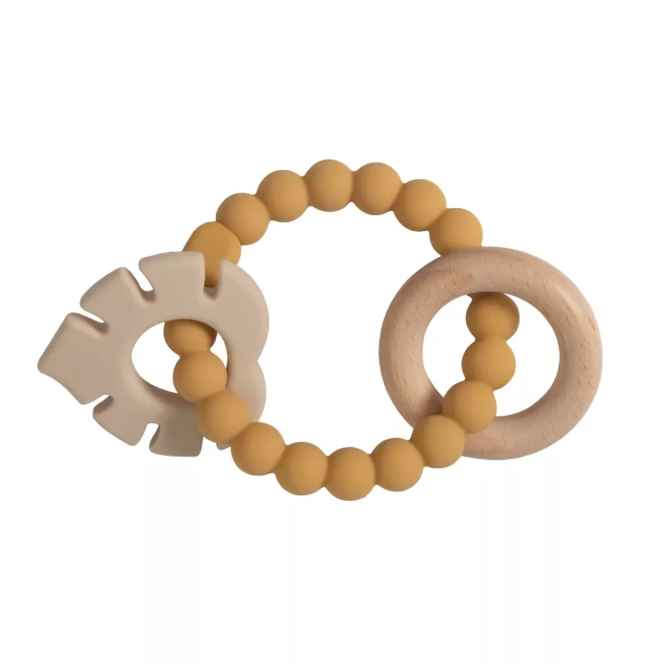 3-in-1 Silicone Teething Ring with Wooden Rattle