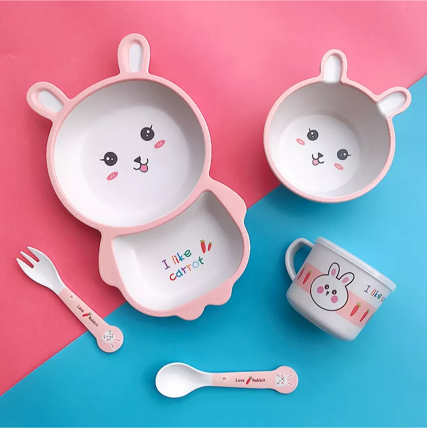 5-piece Bamboo Fiber Cartoon Tableware Set