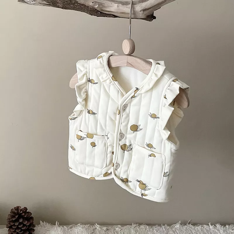 This waistcoat is ideal for spring and autumn outings. Its unique floral print and classic design make it a standout piece that your little one will love to wear. The soft, cotton-padded material ensures maximum comfort and warmth, while the sleeveless design allows for easy layering. Whether you’re heading to a family gathering or a casual day out, this waistcoat adds a touch of charm and elegance to your baby’s outfit.