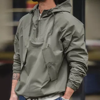 Men’s Dark Green Hooded Parka Jacket for Fall Outdoor Wear