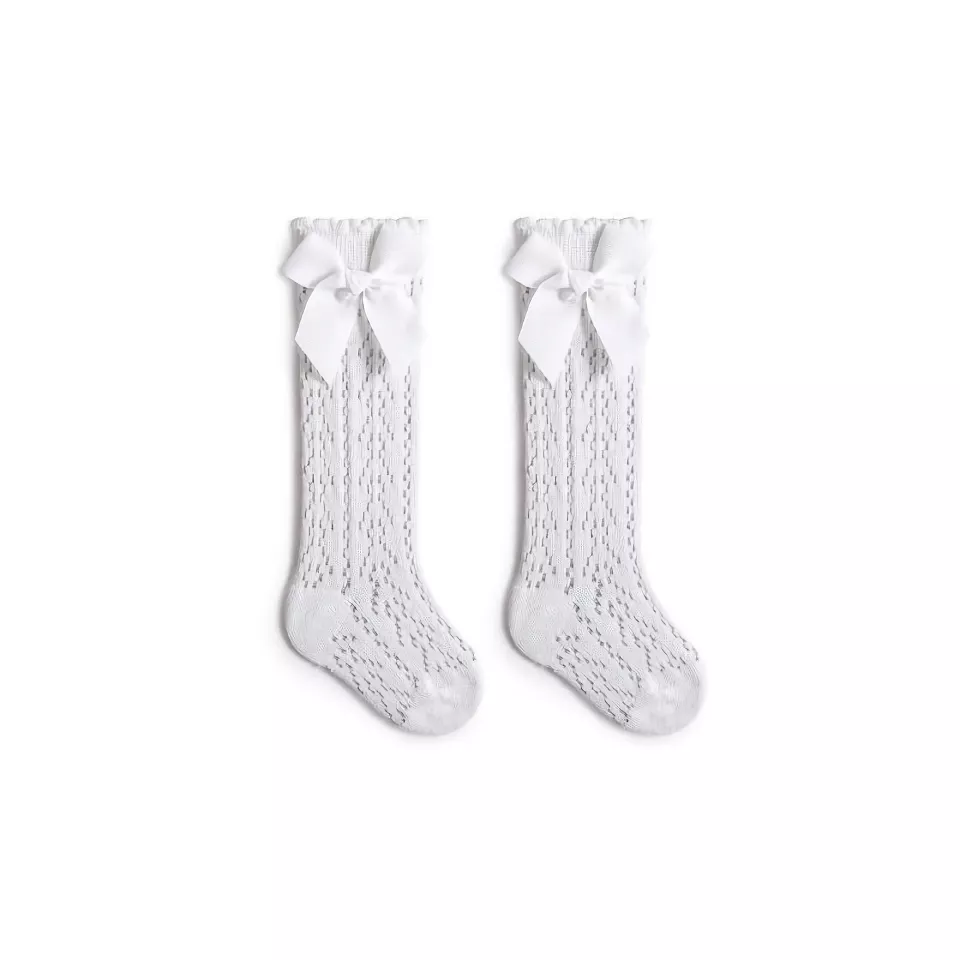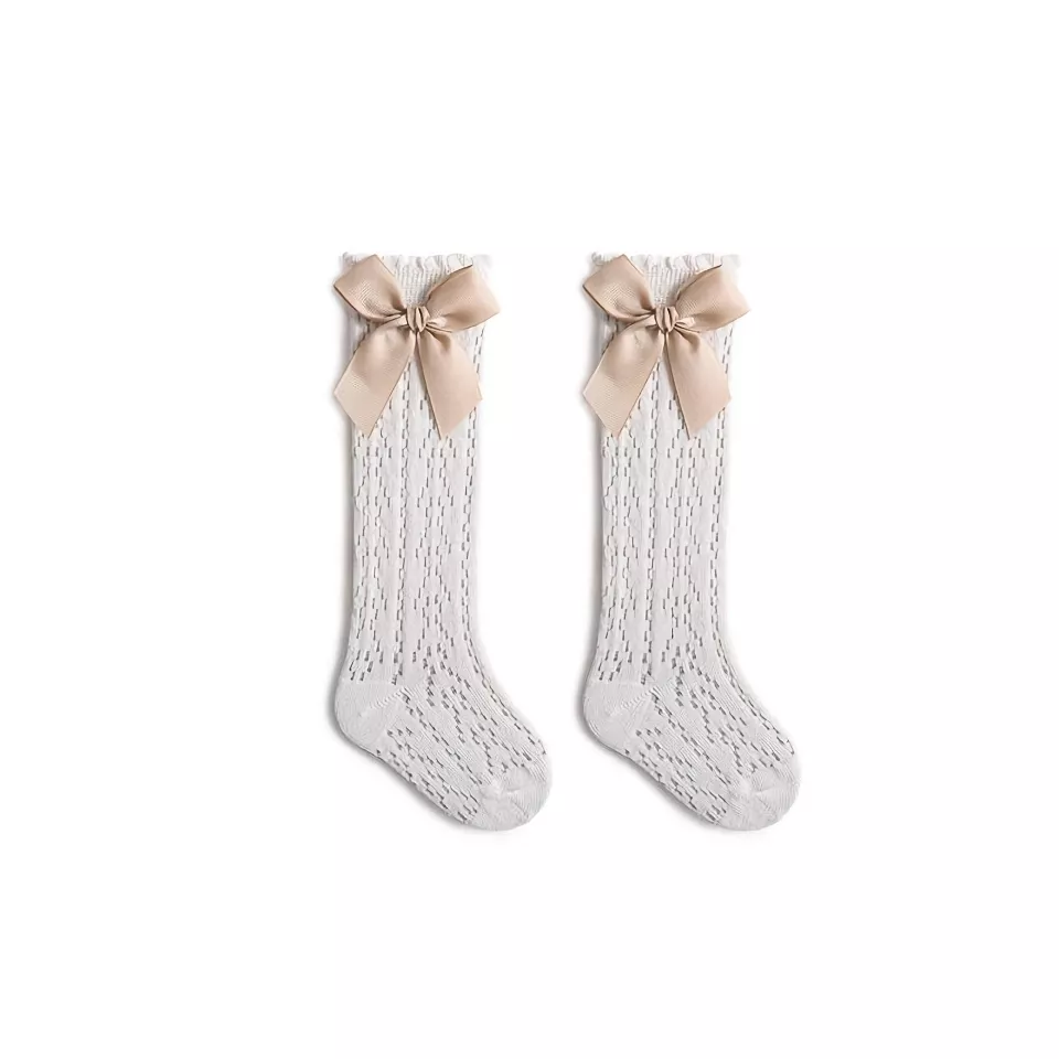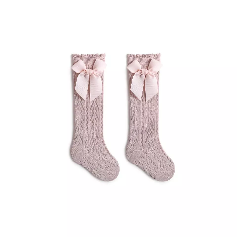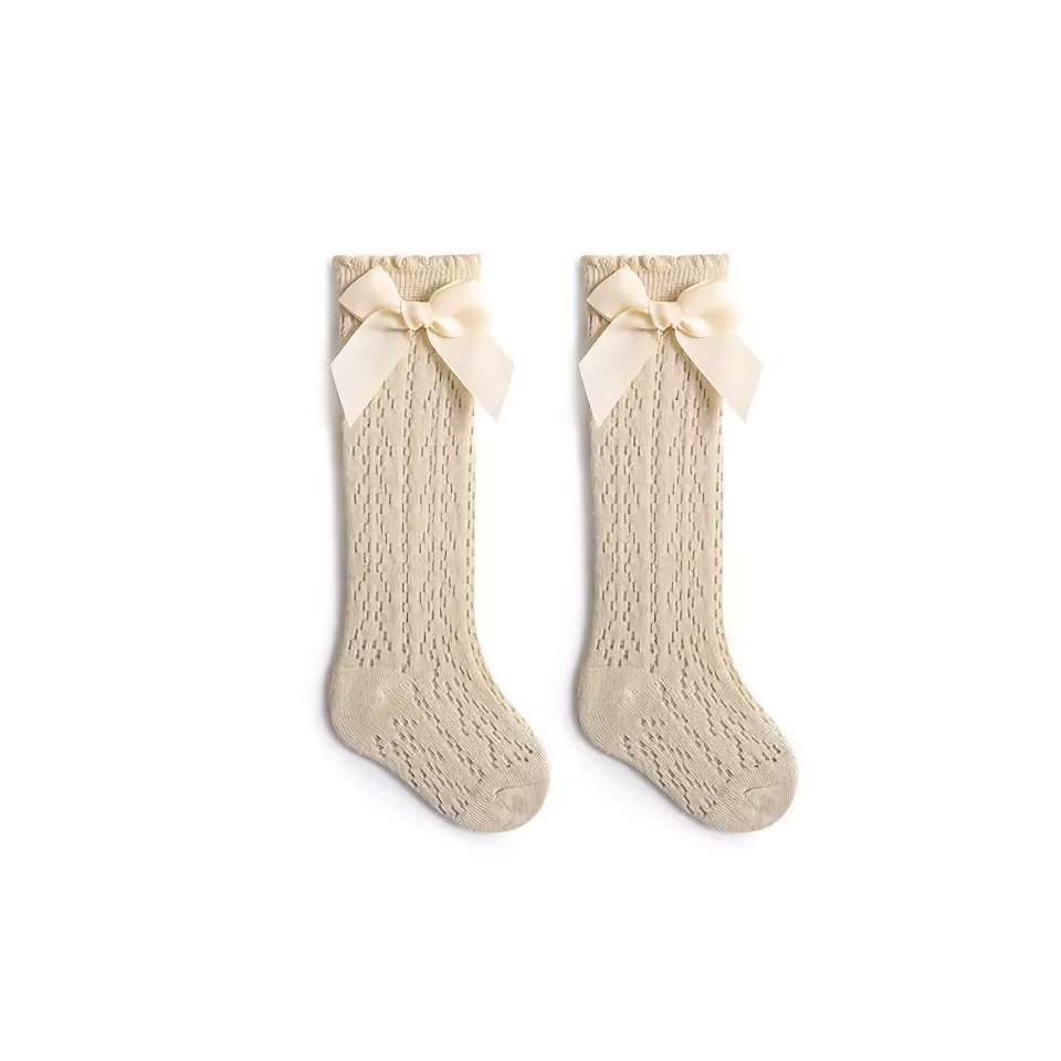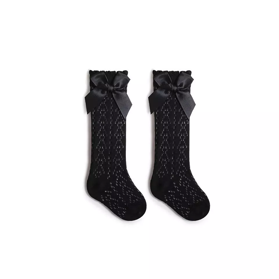 What sets our Baby Girl Knee-High Mesh Socks apart is their combination of style, comfort, and safety. The soft cotton and acrylic blend ensures a comfortable fit, while the breathable mesh design keeps your baby’s feet cool. The non-slip soles provide added security, making these socks perfect for active toddlers. The elegant bow detail adds a cute and fashionable element, making these socks a delightful addition to any baby girl’s wardrobe.