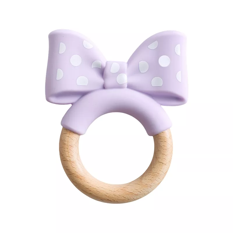 The combination of food-grade silicone and natural wood not only makes this teether unique but also provides varied textures that help stimulate your baby’s sensory development. Its adorable bow design adds a playful touch, making teething a more enjoyable experience for your little one. Plus, with its lightweight and easy-to-hold design, it quickly becomes a favorite companion for your baby.