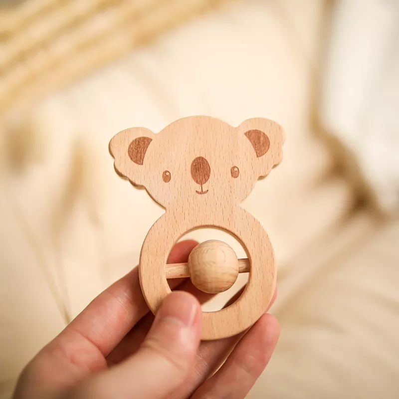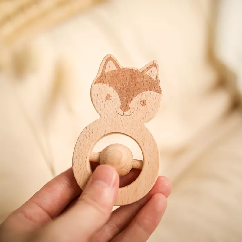 What sets our Baby Teether Nursing Toy apart is its natural beech wood construction and charming animal designs. The smooth texture of the wooden ring is gentle on delicate gums, while the rattling sound entertains and engages babies. This teether not only helps with teething but also encourages early educational play and sensory stimulation.