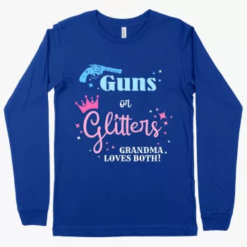 Guns or Glitters Grandma Loves Both Long Sleeve T-Shirt – Gender Reveal T-Shirts for Grandparents – T-Shirts for Grandma