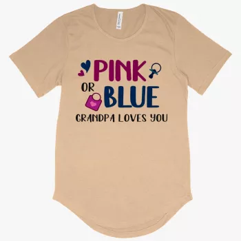 Men’s Pink or Blue Your Grandpa Loves You T-Shirt with Curved Hem – Gender Reveal T-Shirts for Grandparents – T-Shirts for Grandpa