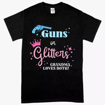 Heavy Cotton Guns or Glitters Grandma Loves Both T-Shirt – Gender Reveal T-Shirts for Grandparents – T-Shirts for Grandma
