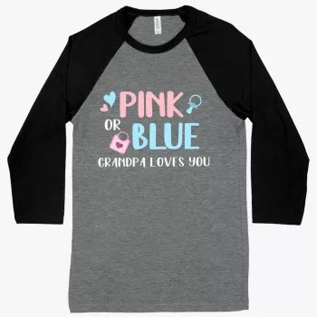 Pink or Blue Your Grandpa Loves You Baseball T-Shirt – Gender Reveal T-Shirts for Grandparents – T-Shirts for Grandpa