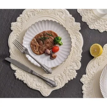 45CM Silicone Oval Placemat Flower Embossed Large Lace Tablemat