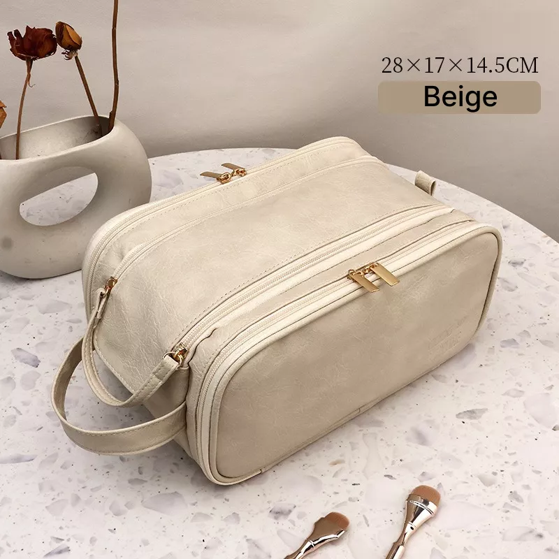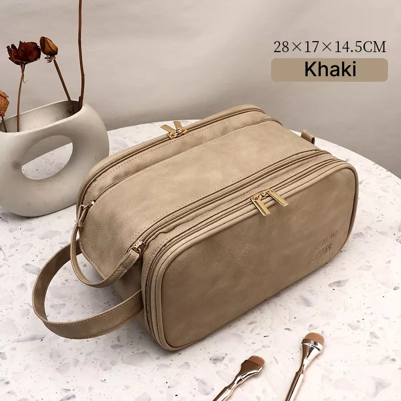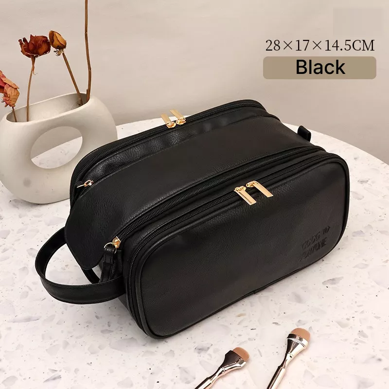 The large capacity design allows you to store everything from makeup brushes to skincare products, while the double zipper closure ensures that everything stays securely in place. The compact yet spacious interior keeps your items neatly organized, so you can find exactly what you need in seconds. Available in a solid, classic pattern, this bag exudes sophistication, making it not only a functional storage solution but also a stylish addition to your daily routine.