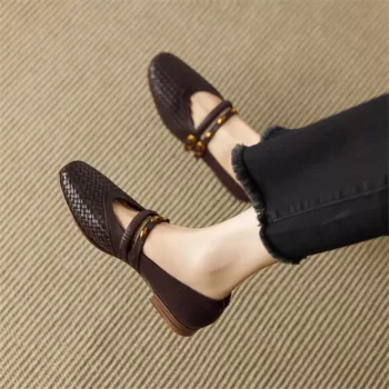 Elegant Women’s Genuine Leather Mary Jane Shoes with Low Heel