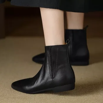 Grandma or Granddaughter – 2025 Women’s Genuine Leather Low Heel Ankle Boots Round Toe Slip-On Shoes