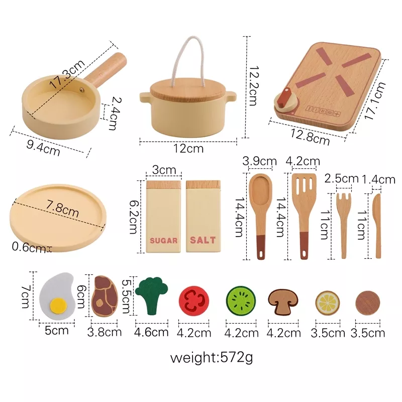 Our Wooden Kitchen Toy Set is designed to captivate young minds with its engaging features: